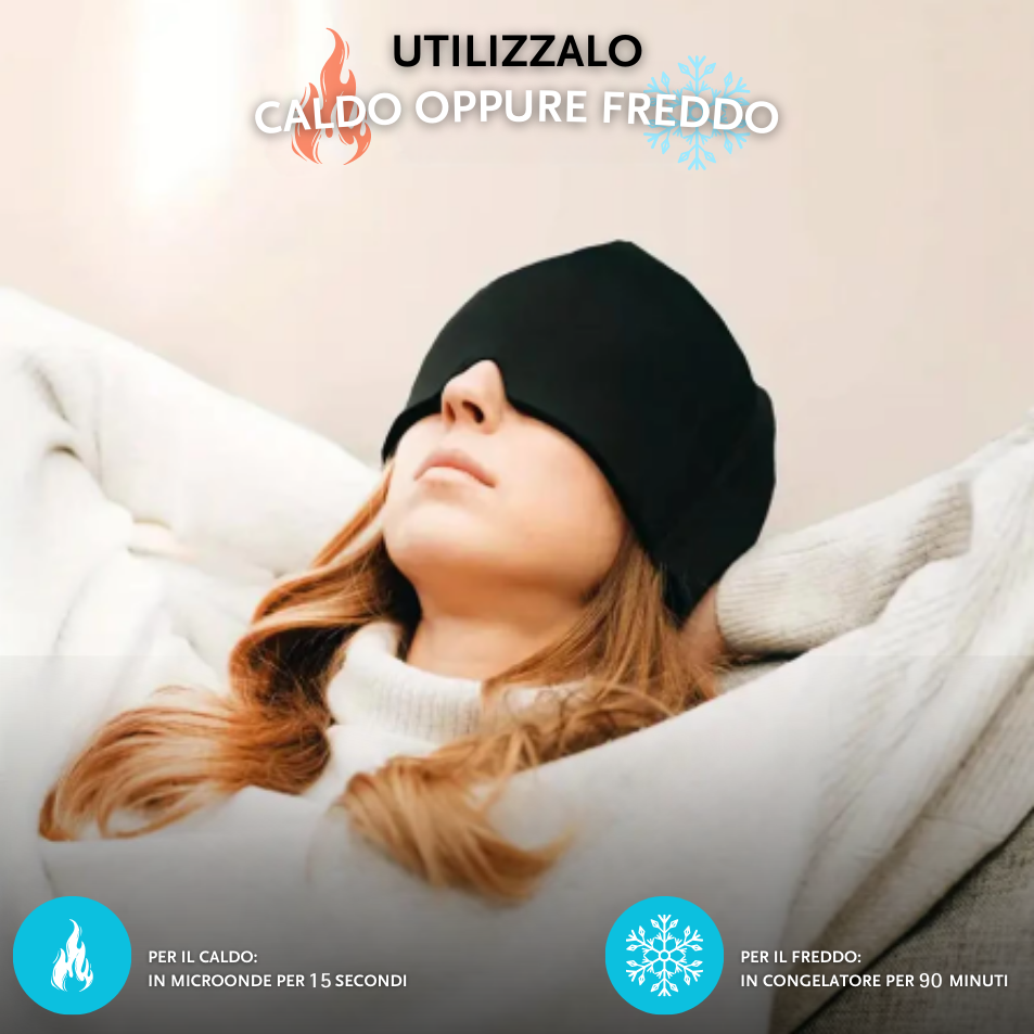 Addio dolore, benvenuto sollievo! Allevia o previeni rapidamente le emicranie ovunque utilizzando la terapia a compressione fredda o calda. Il tessuto soffice come una nuvola del cappello, abbinato agli inserti in gel di alta qualità, garantisce una vestibilità perfetta per chiunque, fornendo compressione calda o fredda fino a 1 ora